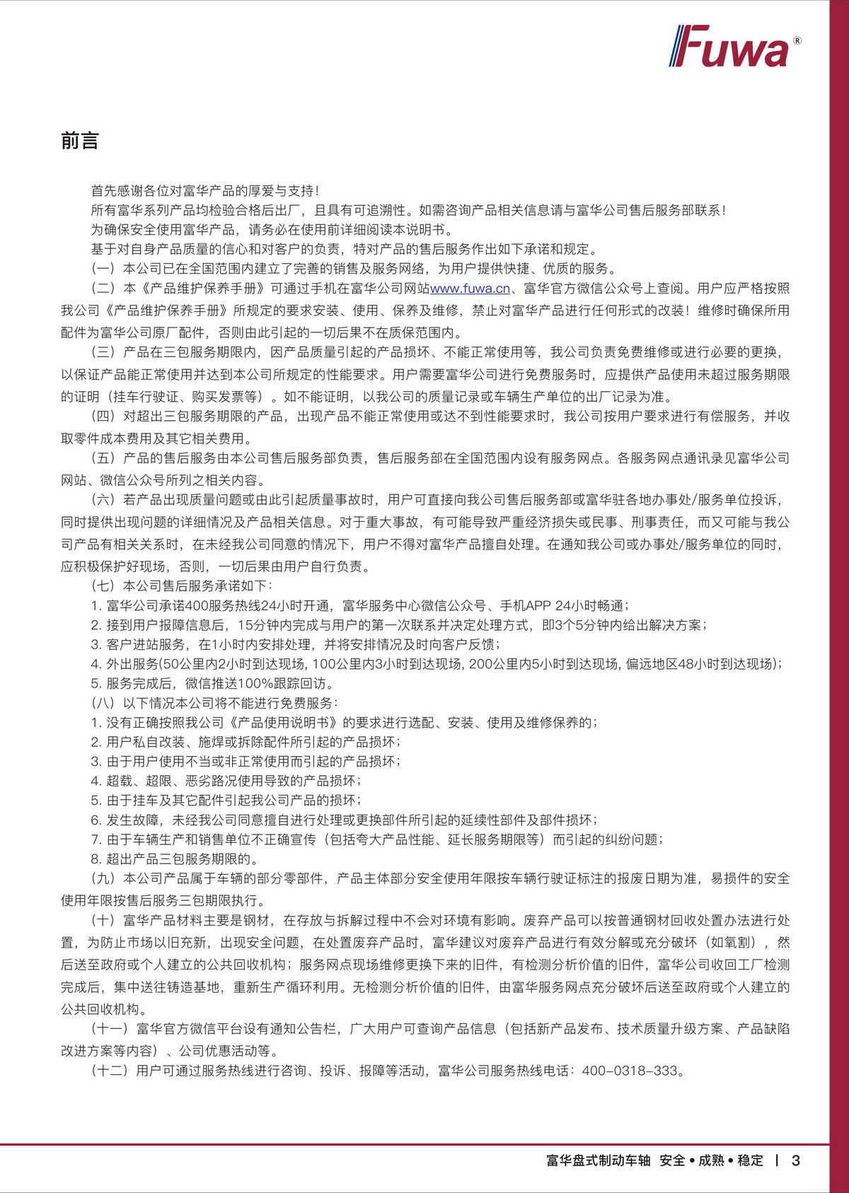 富華盤式制動車軸【產(chǎn)品維護(hù)保養(yǎng)手冊】
